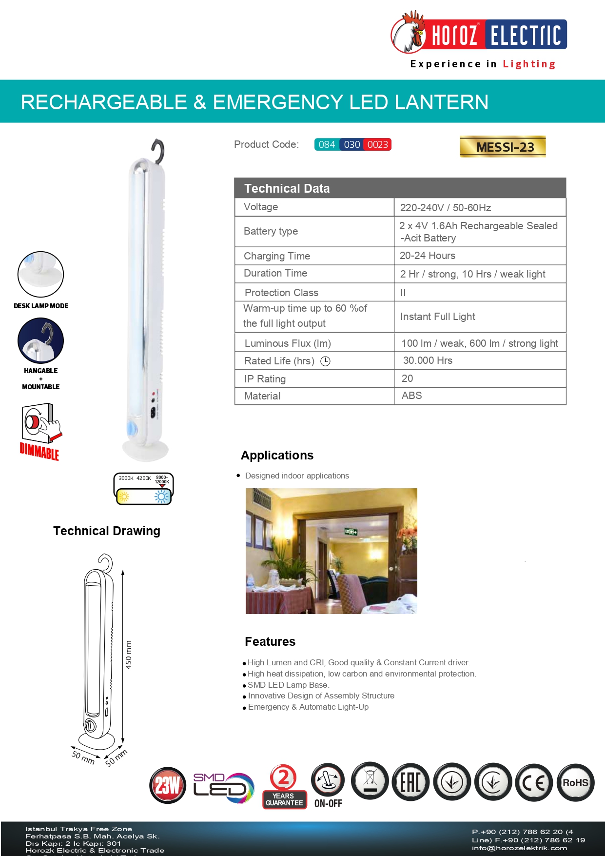 Аккумуляторный светильник предназначен для аварийного освещения при неисправностях сети, отключении электроэнергии, а также для использования в тех местах, где сеть недоступна. Светодиодный LED-светильник обладает ярким свечением, небольшим весом, компактным размером и современным эстетичным внешним видом. Данный аккумуляторный светильник будет незаменимым помощником в самых экстремальных ситуациях дома, в офисе, на природе. Когда доступа к электричеству нет или оно отсутствует, качественное освещение будет у вас всегда под рукой.