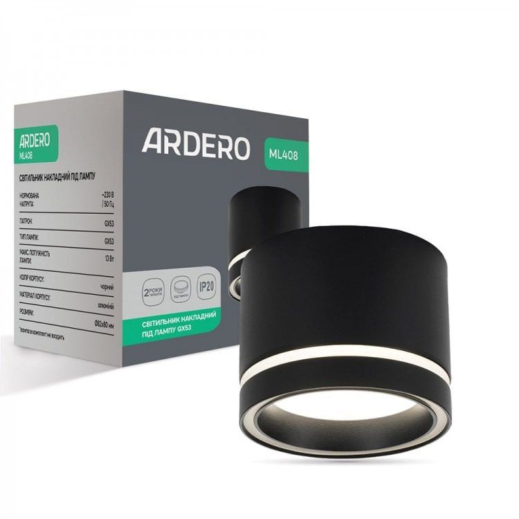 Преимущества и особенности накладного светильника Ardero ML408 под лампу черного цвета: