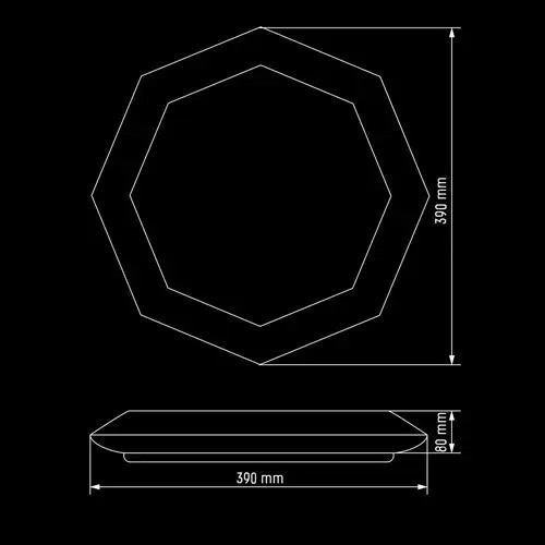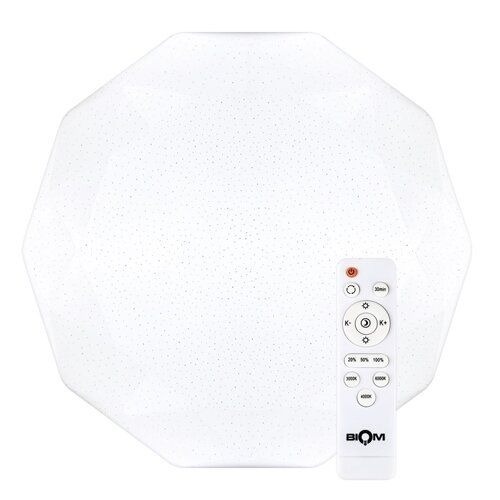 Этот накладной светодиодный смарт-светильник выполнен в виде десятигранника и имеет мощность 50 Вт, что эквивалентно 450 Вт для традиционных источников света. Цветовая температура модели колеблется в диапазоне 3000-6000 К (от тёплой до холодной части светового спектра). Рассеиватель изделия матовый и окрашен в белый цвет. Напряжение питания составляет 175-265 В, световой поток –3800 лм, а светоотдача –76 лм/Вт. Углы свечения доходят до 170°, а индекс цветопередачи равен 80 единиц. Класс защиты светильника – IP20. Его арматура выполнена из металла, а плафон – из поликарбоната. В комплекте со светильником поставляется пульт управления. Также в данной модели предусмотрена возможность диммирования.
