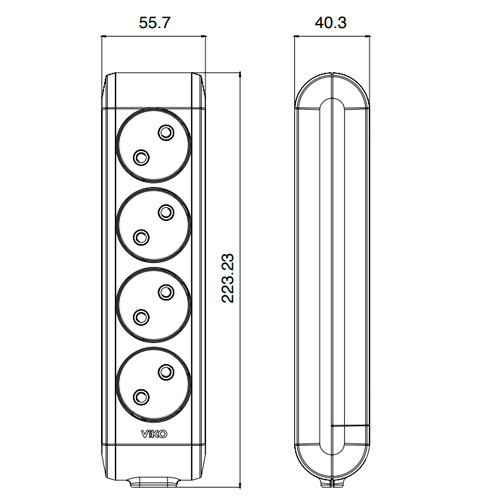 Колодка VIKO Multi-Let предназначена для подключения четырех потребителей 220 В суммарной мощностью до ~3500 Вт. Представляет собой розетку наружного исполнения, может использоваться как накладная розетка, так и колодка для удлинителя.
