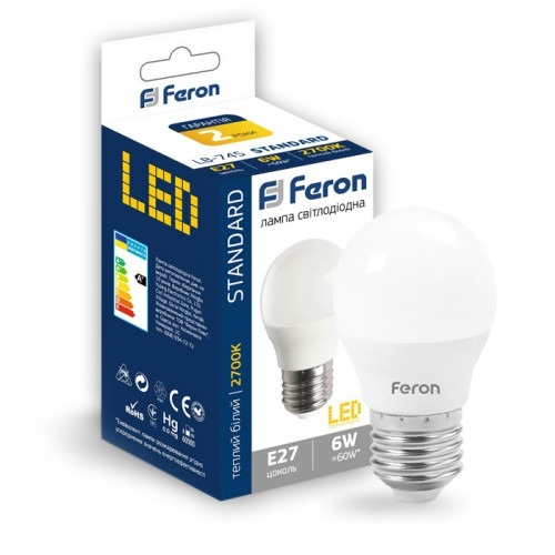 LED лампа Feron LB-745 G45 6W E27 2700K