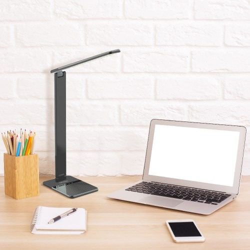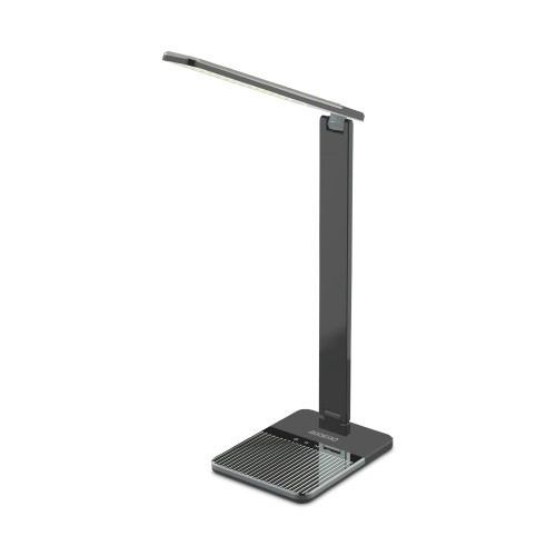 На основе светильника расположены держатель для телефона и кнопка управления уровнями яркости и температуры свечения – благодаря этому светильник можно использовать для обучения, работы и отдыха.