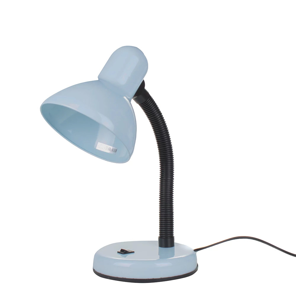 Осветительный прибор изготовлен из металла, оборудован поворотными механизмами, которые позволяют регулировать угол наклона плафона. Подставка обеспечивает надежную фиксацию настольной лампы на столе.