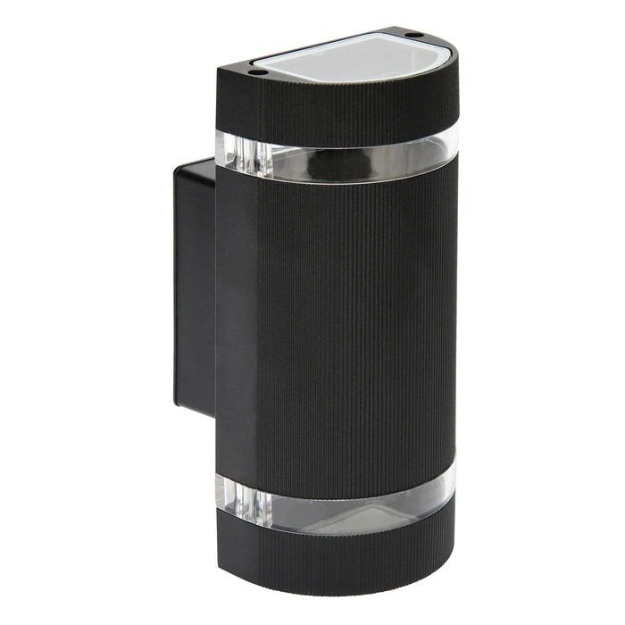Настенный светодиодный светильник предназначен для подсветки фасадов. Светильник можно устанавливать на террасе, крыльце балконе или просто на стене в доме. В качестве источника света используется две лампочки с цоколем GU10 и максимальной мощностью 35W.