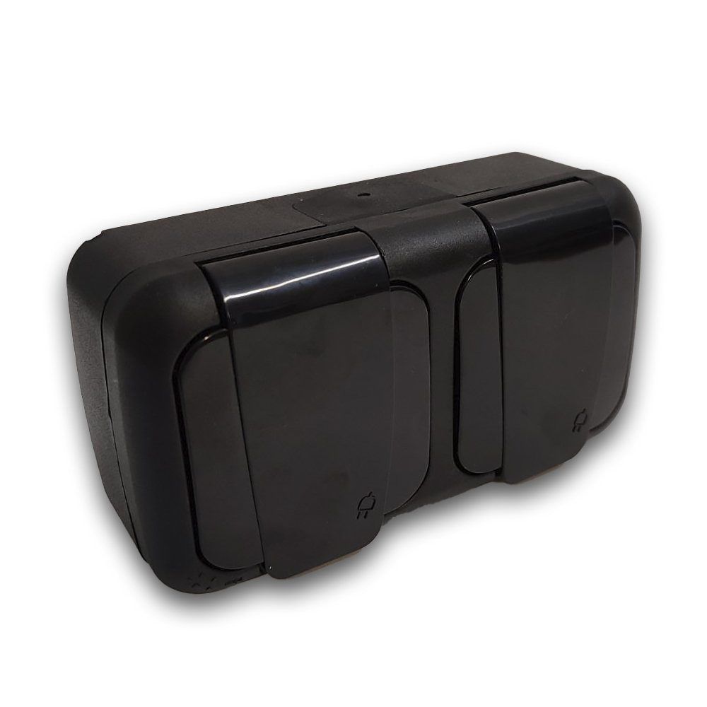 Розетка наружная двойная с заземлением и защитными шторками, с крышкой Viko Palmiye Черная (90555188)