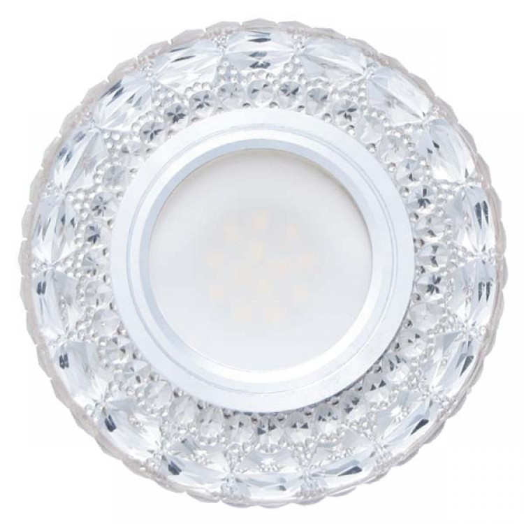 Точечный светильник FERON 7095 со встроенной светодиодной подсветкой обеспечивает равномерное, яркое и стабильное излучение света без мерцаний. Свечения LED подсветки сквозь обрамлённый прозрачный кристалл создает красивые блики преломленного света на потолке, из-за чего он идеально подходит для натяжных и подвесных потолков гостиной, кухни или коридора.