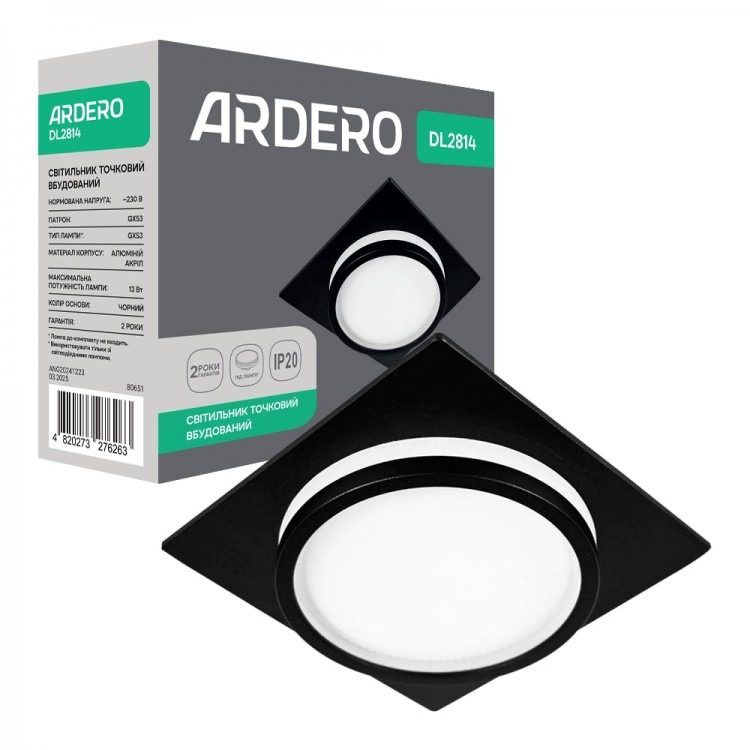 Встраиваемый неповоротный светильник Ardero DL2814 GX53 черный