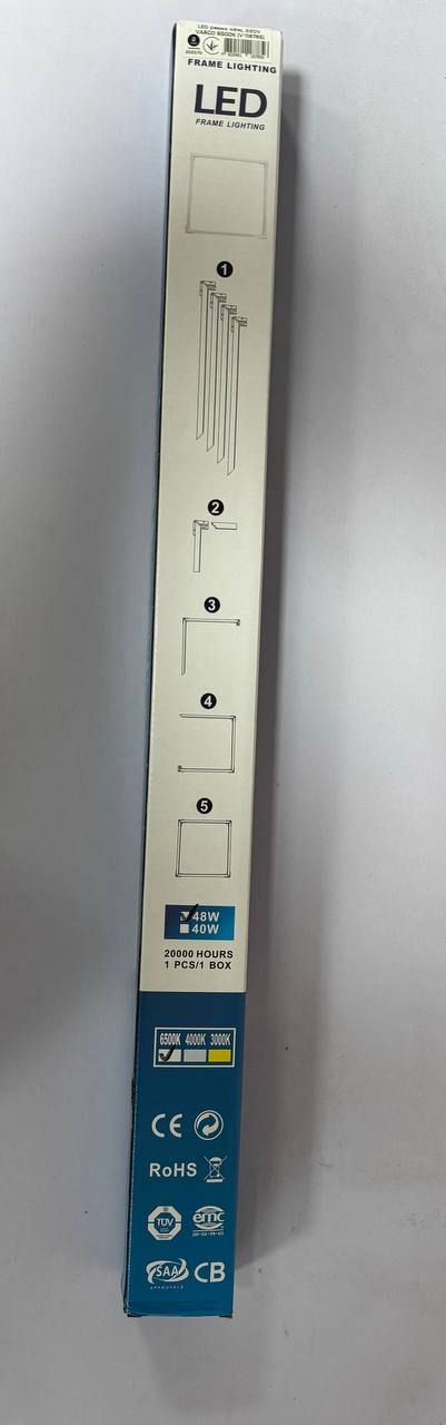 Особенность светильника рамки VARGO 48W в конструкции. Светильник рамка представляет собой конструкцию из алюминия . Глубина и ширина светильника и излучающая кромки всего 10мм. Таким образом светильник представляет собой светящуюся рамку встраиваемую в ячейку потолка армстронг