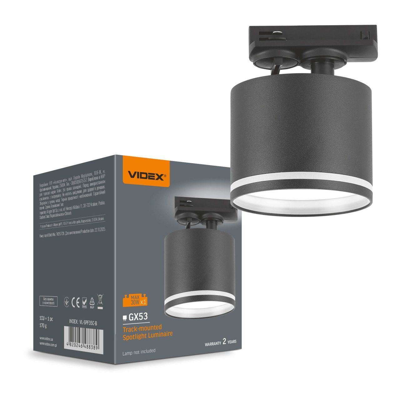 Потолочный точечный светильник под лампу GX53 VIDEX SPF35C – трековый светильник, устанавливаемый на токопроводящей шине, представляет собой современное решение для освещения любого интерьера. Для работы светильника необходима светодиодная лампочка с цоколем GX53 и максимальной мощностью до 30Вт. Используется как для основного, так и для акцентного освещения, в частности, для интерьерной подсветки жилых, административных и торговых помещений, кафе, ресторанов, гостиниц и т.д. Современный дизайн и компактные размеры делают его универсальным, а возможность регулировать угол наклона поможет направить луч света в необходимое вам место. Используются исключительно в сухих помещениях, так как имеют защитный класс от пыли и влаги IP20 . Не содержит вредных веществ. После установки не требует обслуживания в течение всего периода эксплуатации.