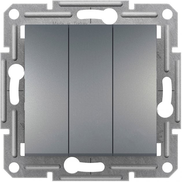 Механизм выключателя трехклавишного предназначен для управления (включения/выключения) трех независимых групп света либо любой другой нагрузки. Монтируется данный механизм в стандартную монтажную коробку скрытого монтажа диаметром 60 мм. Для того, чтобы организовать накладной монтаж на стену необходимо использовать специальную монтажную коробку. Выключатель оснащен надежными фиксаторами на захватах и винтах.
